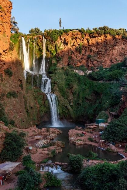 Begin with pickup from your hotel or riad, before departing for one of the most spectacular waterfalls in North Africa, located 93 miles (150 km) north of Marrakech. As you arrive in the village of Ouzoud, admire views of the cascades that plunge 360 feet (110 meters) into the pool below. Follow your local guide through olive groves to an argan oil co-operative and learn about Berber culture. Make the most of the opportunity to admire the views and take photos. Continue down a network of trails to a viewpoint where you can buy fresh orange juice. Board a traditional boat for a short ride on the pool at the bottom of the waterfalls. Then, enjoy a late, Berber lunch at a local restaurant overlooking the falls.